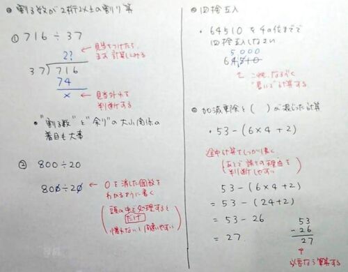 息子は小学4年生で、算数のテーマもだんだん難しくなってきています。割る数が2桁以上の割り算、四捨五入などの概数、加減乗除とかっこが混じった計算の順序など。 単元ごとのテストの点数が気になり、息子と一緒にテスト問題の解き直しをしました。学校はテ…