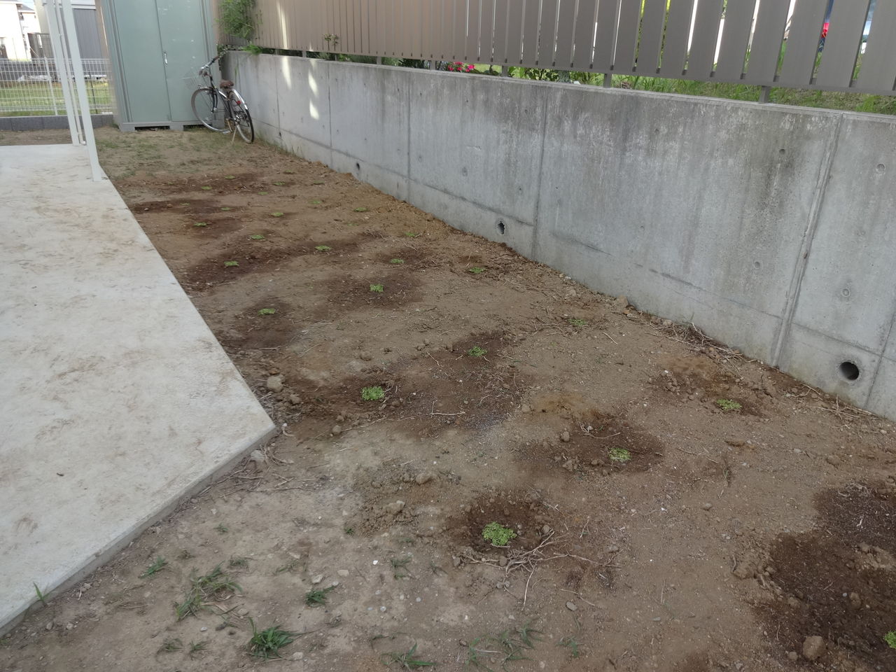 家の横の駐車場から裏庭に抜ける通路にも植えました。