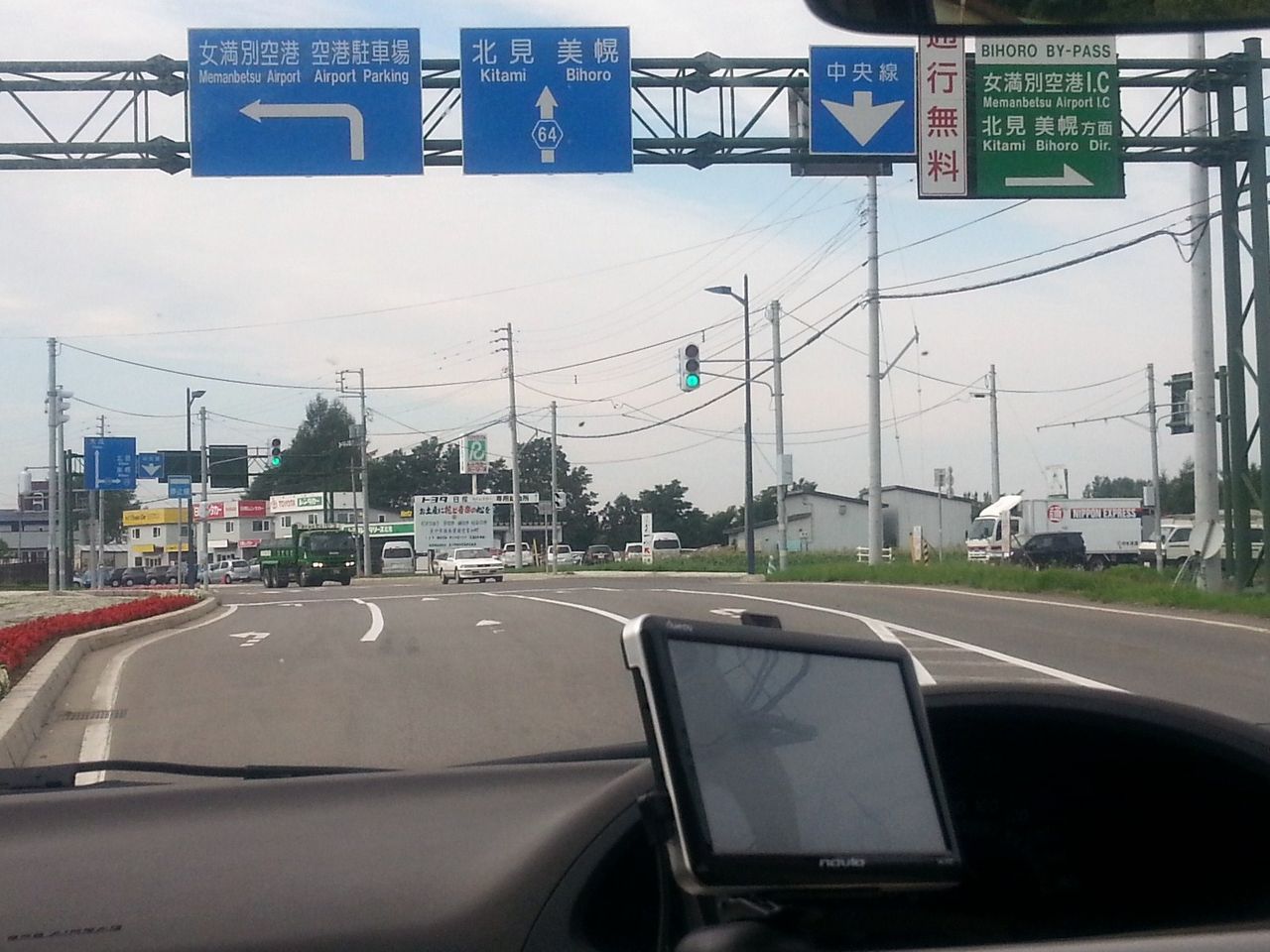 女満別空港前の交差点の写真。