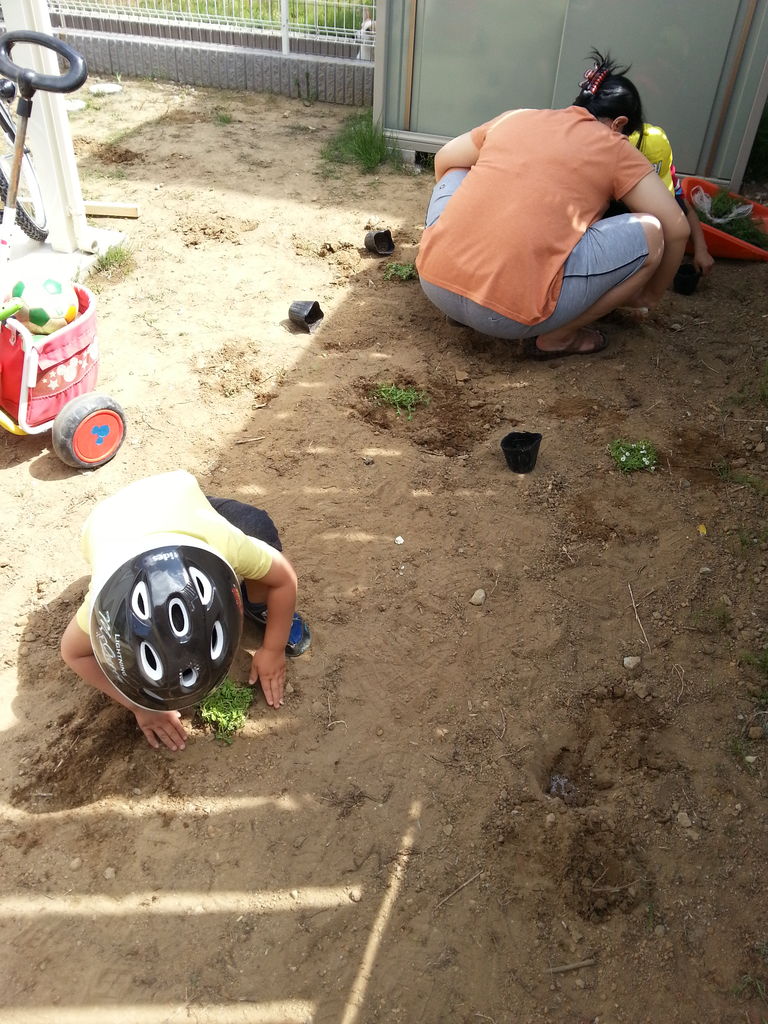 (残りの半分の部分は、掘り起こしなしで植えてみようという実験です…という言い訳)